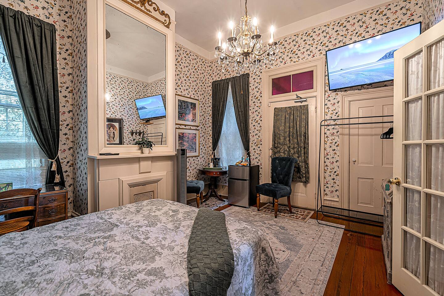 Don't just visit Savannah, journey back in time. Experience the charm of history with modern comforts. The Parlor room features a luxurious queen-size bed, a spacious private bathroom, and a 50-inch flatscreen TV. Guests can unwind in the serene ambiance of our well-maintained historic house and enjoy access to all common areas, including elegant living spaces and tranquil gardens. The Parlor Room perfectly blends timeless elegance with contemporary amenities.